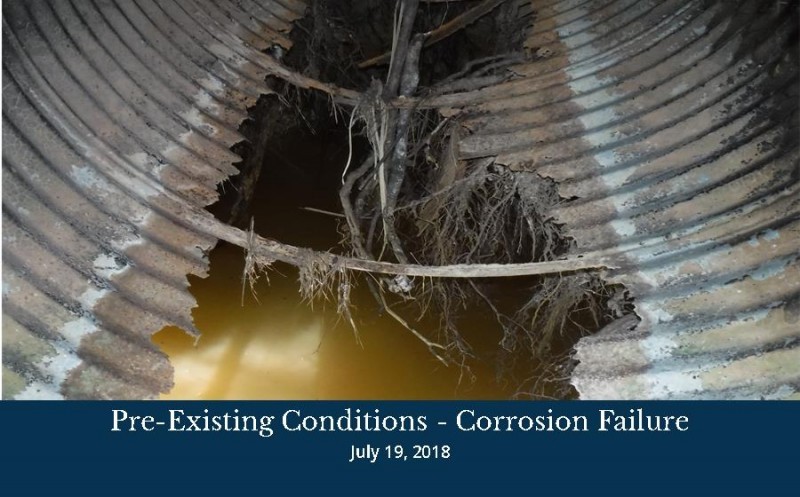 This project consists of the removal of the existing deteriorated 36-inch and 42-inch corrugated metal pipes (CMPs) beneath Ridge Way and extending outside of the existing right-of-way. The failing system will be replaced with 42-inch reinforced concrete pipe (RCP) under the road and 36-inch and 42-inch High Density Polyethylene pipe (HDPE) beyond the back of curb.