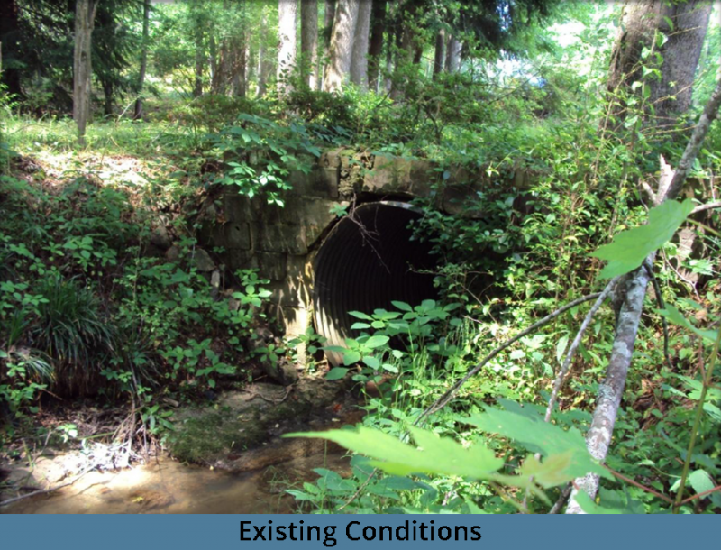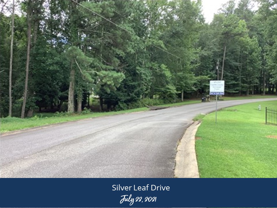 A 48” corrugated metal pipe (CMP) under Silver Leaf Drive has been evaluated for replacement. The pipe is currently failing.