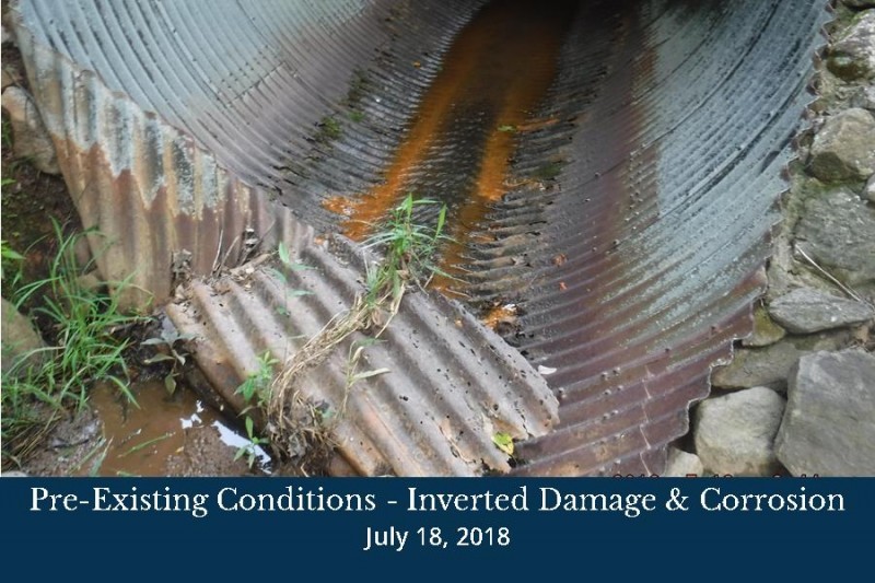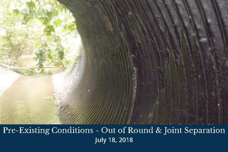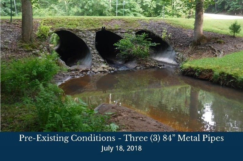 The three (3) 84” corrugated metal pipes (CMP) under Shoal Creek Road have been evaluated for replacement. The current pipes are out of round and exhibit joint separation. Each pipe has physical damage and corrosion present.