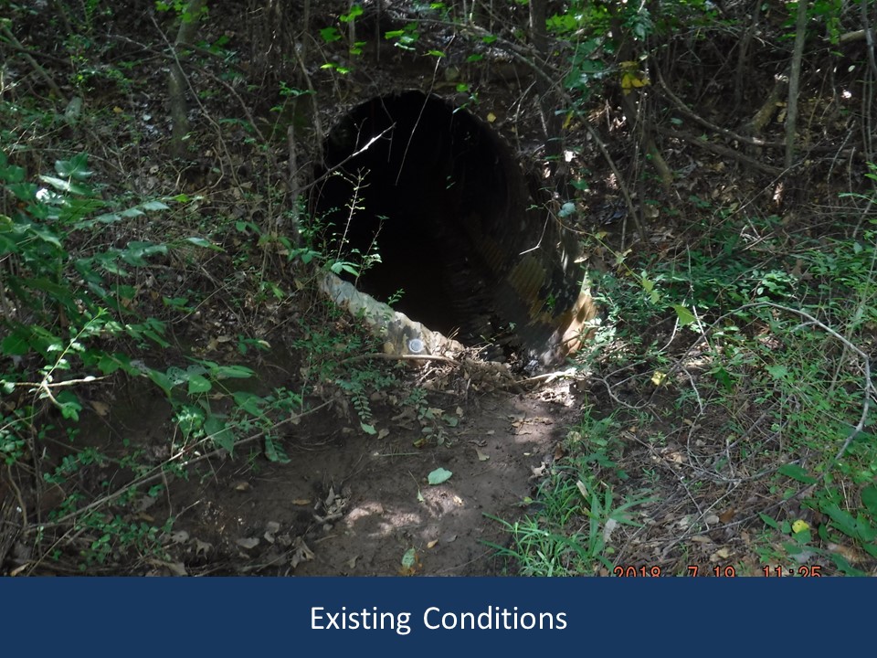 A 48'' metal pipe under roadway needs to be evaluated for possible replacement.