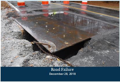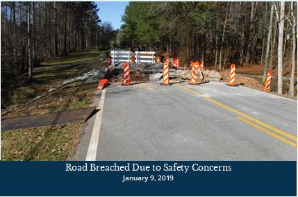 The road and shoulder washed out around the 60” metal pipe during the December 2015 flood event. There is no headwall on this pipe and signs of rusting and pipe damage are visible. The project will address capacity problems during pipe replacement. *Budget changes reflect action by the Board of Commissioners.