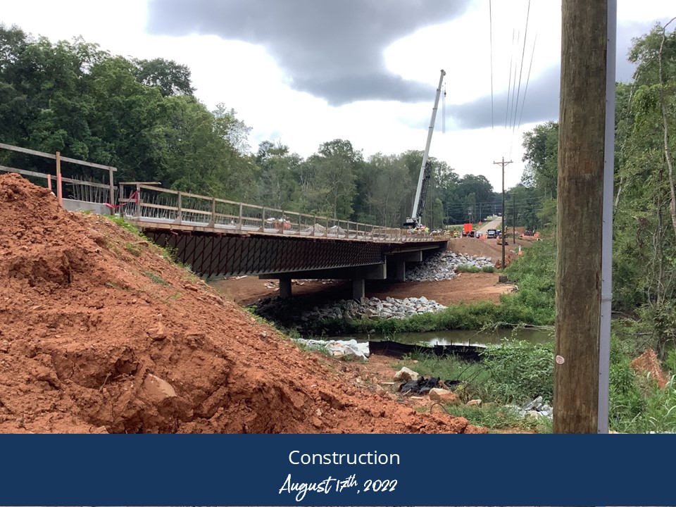 The Ebenezer Church Road Bridge reopened to all traffic on September 30th, 2022. Minor construction activities may continue.