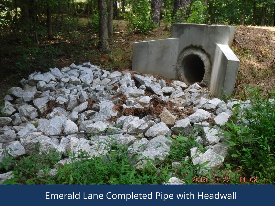 Construction involved the replacement of a deteriorating 24-inch corrugated metal pipe with associated catch basins and headwalls with a 24-inch reinforced concrete pipe with associated catch basins and headwalls.