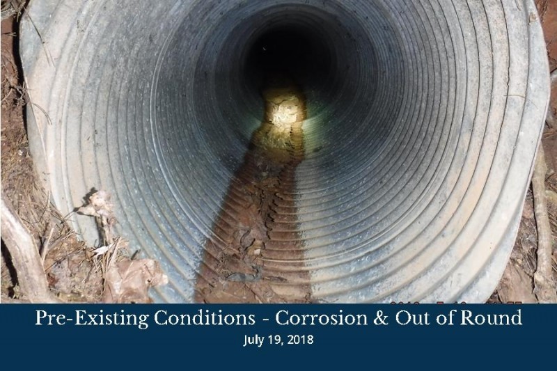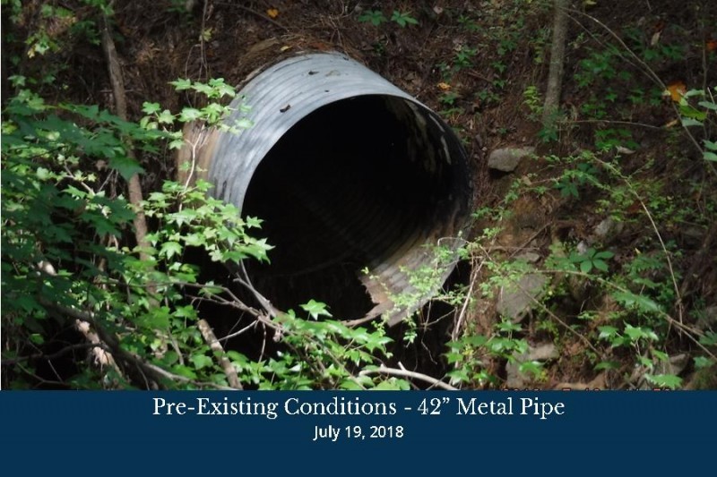 This project consists of the removal of the existing deteriorated 36-inch and 42-inch corrugated metal pipes (CMPs) beneath Ridge Way and extending outside of the existing right-of-way. The failing system will be replaced with 42-inch reinforced concrete pipe (RCP) under the road and 36-inch and 42-inch High Density Polyethylene pipe (HDPE) beyond the back of curb.