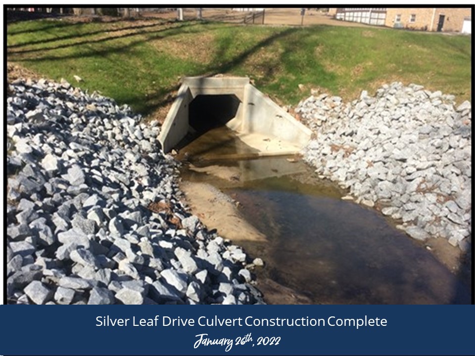 A 48” corrugated metal pipe (CMP) under Silver Leaf Drive has been evaluated for replacement. The pipe is currently failing.