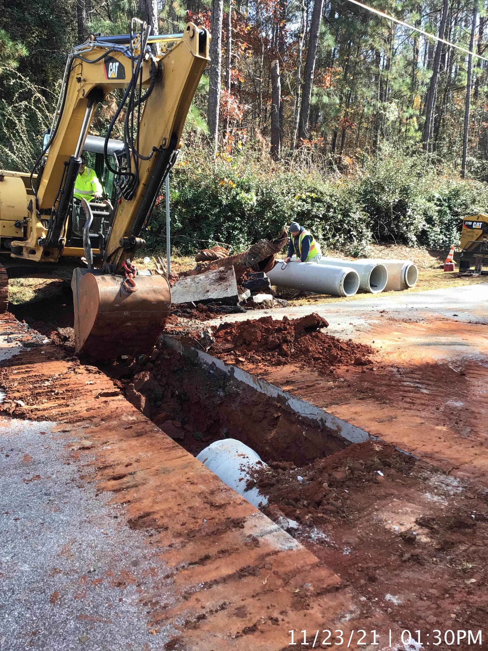 This project is complete. The deteriorating 18-inch corrugated metal pipe (CMP) at the intersection of Darren Drive and Carrolls Way was replaced with an 18-inch reinforced concrete pipe (RCP) with flared end sections.